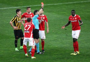 Οι Χανιώτες ήταν απολύτως λογικό να λυγίσουν μετά την αποβολή του Μπανανά και γι' αυτό θα μπορούσε να ισχυριστεί κανείς πως υπάρχει αλλοίωση αποτελέσματος, αφού ο Τάσος Σιδηρόπουλος ξέχασε τους νέους κανονισμούς και ανακάλυψε αποβολή. Όσο για το πέναλτι που δίνει στην ίδια φάση, είναι τραβηγμένο από τα μαλλιά.