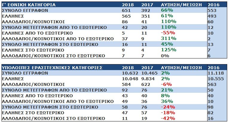 Όπως προκύπτει, λοιπόν, υπήρξε πολύ μικρή αύξηση των μεταγραφών στο σύνολο των κατηγοριών, επαγγελματικών και μη, με το ποσοστό να ανέρχεται στο 4%.