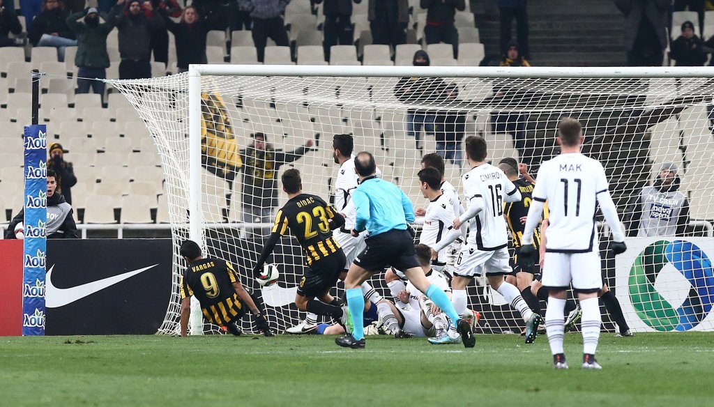 Οι Θεσσαλονικείς, ωστόσο, προδόθηκαν ξανά από την αστεία συμπεριφορά τους σε μια στημένη φάση. Μετά από φάουλ-γέμισμα του Μάνταλου, το κέντρο της άμυνας του ΠΑΟΚ λειτούργησε σαν… παιδική χαρά και ο Βάργκας με διπλή προσπάθεια νίκησε εν τέλει τον Βελλίδη για να στείλει την μπάλα στα δίχτυα στο 33’.
