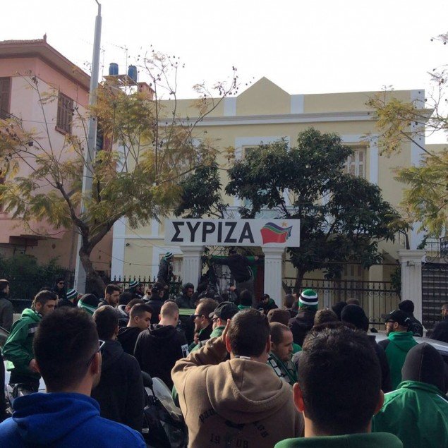 Πριν από την αναμέτρηση με τον Πλατανιά την Κυριακή (31/1), οι οπαδοί των «πρασίνων» συγκεντρώθηκαν έξω από τα γραφεία του ΣΥΡΙΖΑ στα Χανιά, διαμαρτυρόμενοι για την απόφαση του υφυπουργού Αθλητισμού.