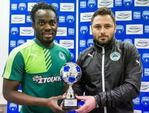 Το βραβείο του για το καλύτερο γκολ της 19ης αγωνιστικής του πρωταθλήματος της Σούπερ Λίγκας παρέλαβε ο Μικαέλ Εσιέν από τον προπονητή της Κ13 του Παναθηναϊκού Μανώλη Παπαδάκη.