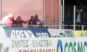 Μάλιστα, ένας οπαδός, μάλλον του Ατρόμητου, μαχαιρώθηκε και χρειάστηκε να μεταφερθεί στο νοσοκομείο, με την κατάστασή του, όμως, να μην εμπνέει ιδιαίτερη ανησυχία, καθώς το χτύπημα ήταν στον ώμο.