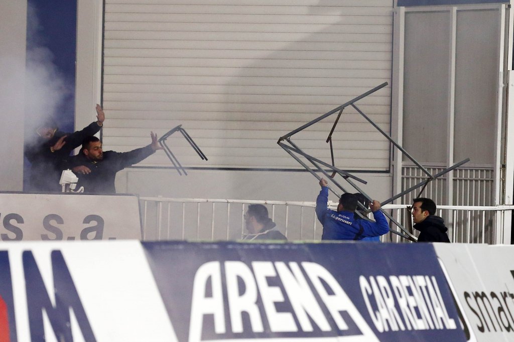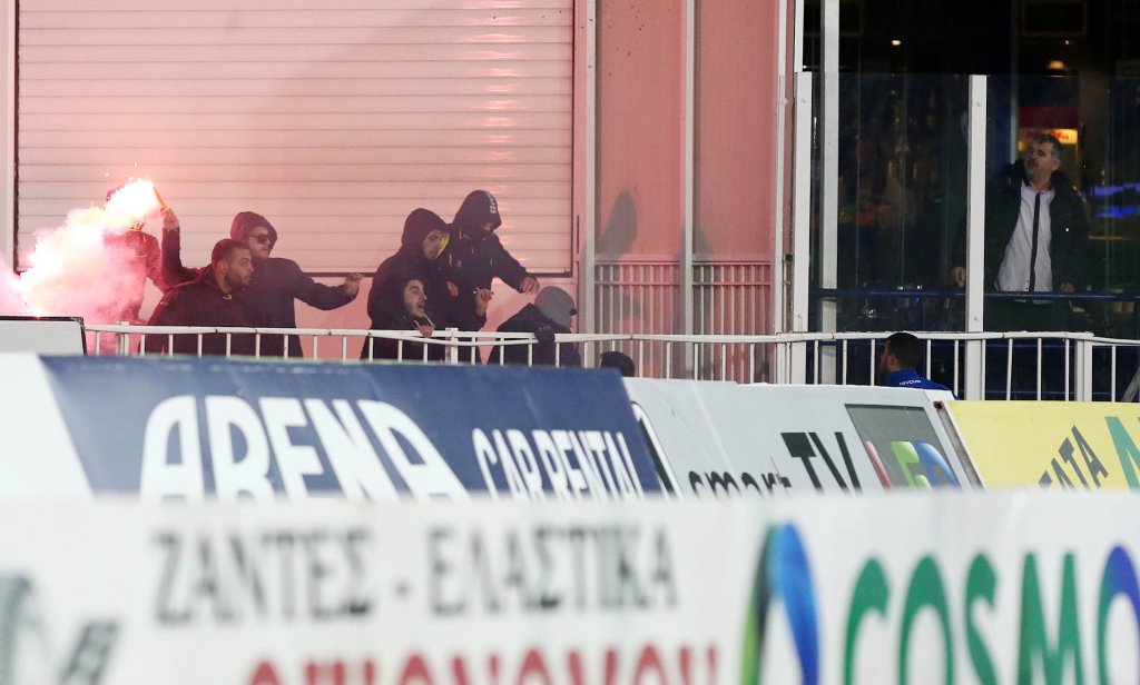 Με το σφύριγμα της λήξης, οπαδοί της Ένωσης μπήκαν στον περιβάλλοντα χώρο του γηπέδου και εκεί τους… συνάντησαν αντίστοιχοι των γηπεδούχων.