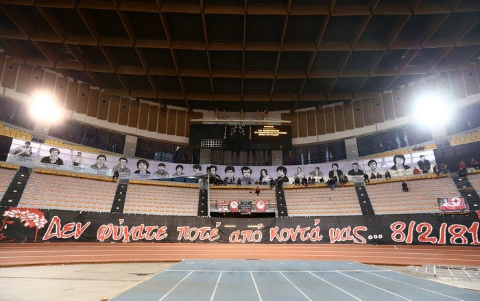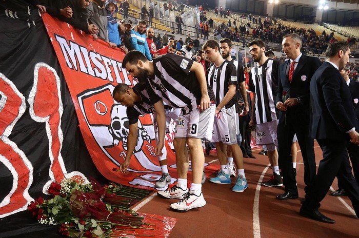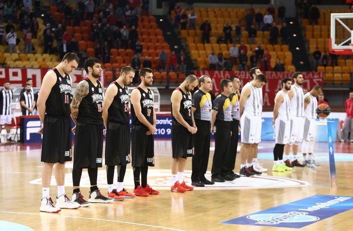 Λίγα λεπτά πριν από το τζάμπολ του αγώνα της Δευτέρας (8/2) στο ΣΕΦ για την Α1 ανδρών, οι Πειραιώτες και οι Θεσσαλονικείς δεν ξέχασαν τους 21 ανθρώπους που τόσο άδικα έχασαν τη ζωή τους στο Στάδιο Καραϊσκάκη.