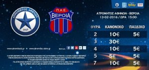 Η πώληση των εισιτηρίων του αγώνα με τη Βέροια θα ξεκινήσει αύριο (Παρασκευή) από το Τμήμα Διαχείρισης Εισιτηρίων από τις 15.00 ως τις 20.00.