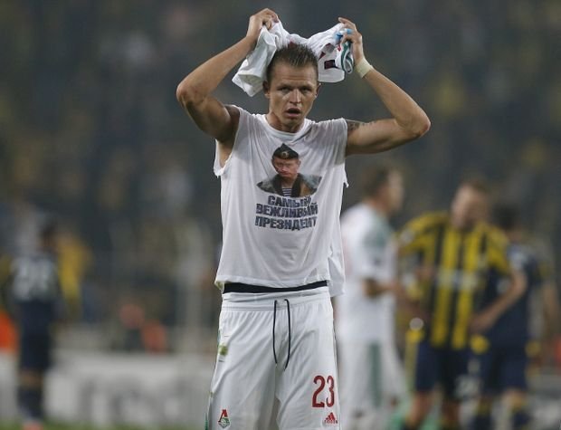 Κατευθυνόμενος προς τα αποδυτήρια, ο άσος της Λοκομοτίβ έβγαλε τη φανέλα του και έμεινε με ένα αμάνικο φανελάκι, το οποίο απεικόνιζε τον Ρώσο πρόεδρο με στολή από την περίοδο που υπηρετούσε στο Ναυτικό και από κάτω είχε την επιγραφή «ο πιο αγαπητός πρόεδρος».