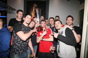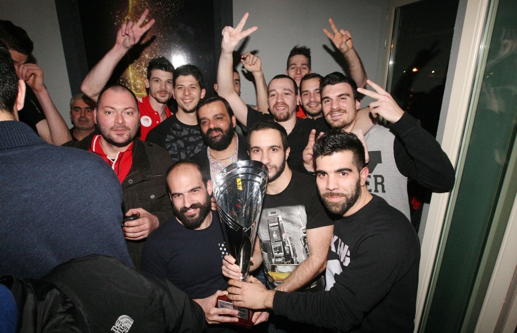 Μετά τη σπουδαία νίκη που πήραν στο σαββατιάτικο (20/2) τελικό κόντρα στους Θεσσαλονικείς με μια ιστορική ανατροπή (3-2), οι «ερυθρόλευκοι» πανηγύρισαν με την ψυχή τους τον τίτλο σε μπαράκι της Ερμούπολης στην παραλία της Σύρου μέχρι και τις πρώτες πρωινές ώρες της Κυριακής (22/2).