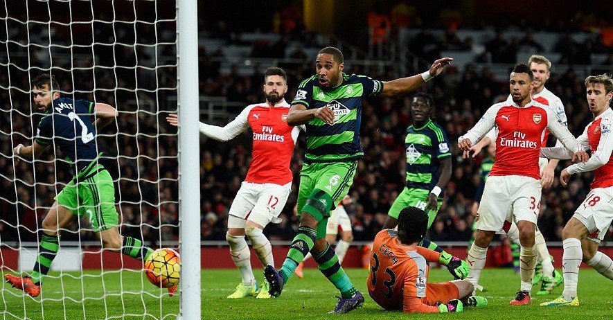 Σε ακόμα χειρότερη μοίρα είναι η Άρσεναλ, καθώς, αν και προηγήθηκε με γκολ του Τζόελ Κάμπελ στο 15ο λεπτό, η Σουόνσι τη νίκησε 2-1 στο «Έμιρεϊτς» με σκόρερ τους Ρούτλετζ (32’) και Γουίλιαμς (74’).