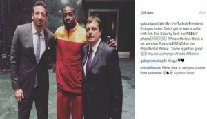 «Συναντήσαμε τον Τούρκο πρόεδρο Ερντογάν σήμερα. Δεν βγάλαμε μία σέλφι μαζί του γιατί οι άνθρωποι ασφαλείας του μας πήραν τα τηλέφωνα. Παρόλα αυτά έβγαλα φωτογραφία με δύο θρύλους της Τουρκίας στο προεδρικό παλάτι. Για μένα είναι το ίδιο», έγραψε χαρακτηριστικά ο Γκαμπονέζος άσος στο instagram δημοσιεύοντας φωτογραφία με τον παράγοντα με τους Χέντο Τούρκογλου και Εργκίν Αταμάν.