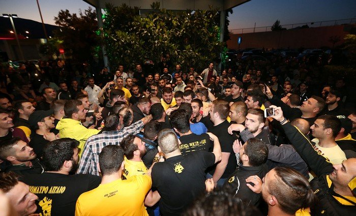 Την εξέδρα της «Original» θύμισε το βράδυ της Δευτέρας (16/5) το ξενοδοχείο που έχει καταλύσει η αποστολή της ΑΕΚ εν όψει του τελικού Κυπέλλου με τον Ολυμπιακό.