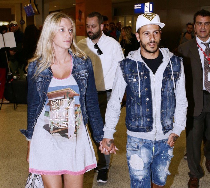 Ο 24χρονος Πορτογάλος δεξιός μπακ της Σεβίλλης ταξίδεψε στην Ελλάδα για λογαριασμό του Ολυμπιακού με πτήση από τη Μαδρίτη, συνοδευόμενος από την εντυπωσιακή σύντροφό του.