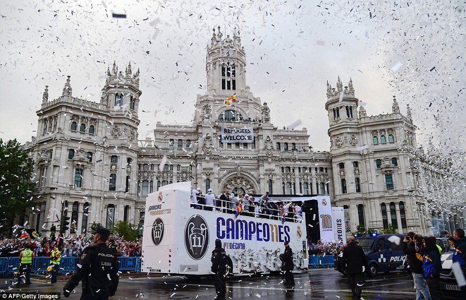 Έτσι το πρωί της Κυριακής (29/5) έγινε η καθιερωμένη παρέλαση των θριαμβευτών, η οποία κατέληξε στην πλατεία όπου πάντα γιορτάζουν οι «μερένγκες», την Plaza de Cibeles.