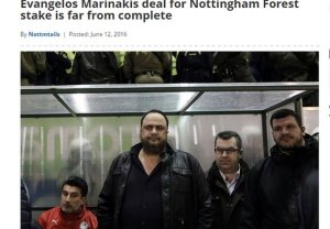 Δημοσίευμα της «Nottigham Post» αναφέρει πως «κάθε άλλο παρά τελειωμένη είναι η συμφωνία με τον Μαρινάκη», αναφέροντας πως η Football League περιμένει στοιχεία που να επιβεβαιώνουν ποια είναι η οικονομική επιφάνεια του ισχυρού άνδρα του Ολυμπιακού.