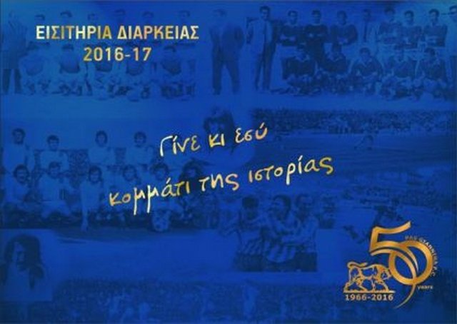 Τέλος, σας ενημερώνουμε σχετικά με τις τιμές των εισιτηρίων αγώνων της ποδοσφαιρικής περιόδου 2016-17.
