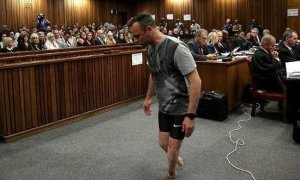 Ο Πιστόριους σηκώθηκε χωρίς τα προσθετικά του άκρα, τρεκλίζοντας, ιδρώνοντας και με δάκρυα στα μάτια ακολούθησε την εντολή του δικαστηρίου.