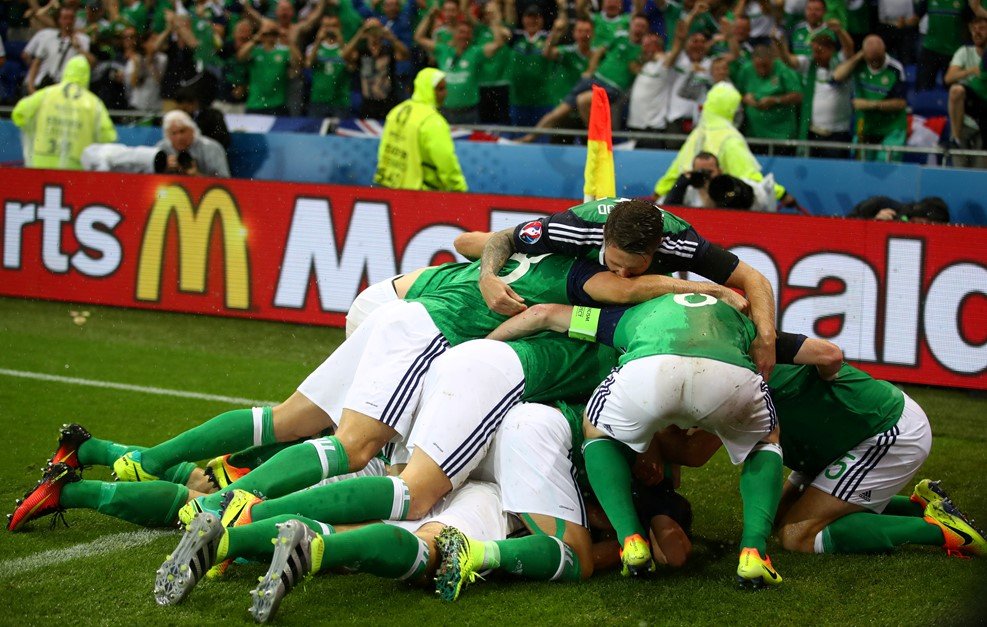 Με γκολ του πολύπειρου Γκάρεθ ΜακΌλεϊ και του Νάιαλ Μακ Γκιν, η Βόρεια Ιρλανδία, πρωτάρα σε τελική φάση Ευρωπαϊκού Πρωταθλήματος, πανηγύρισε την πρώτη της νίκη στη διοργάνωση, με θύμα την Ουκρανία (2-0).