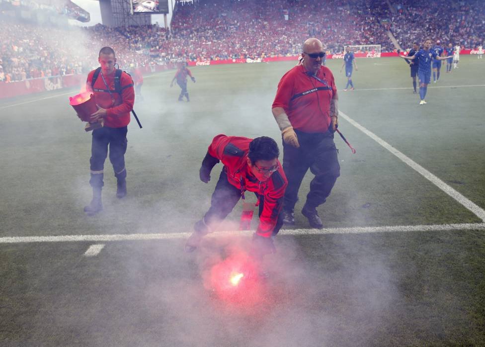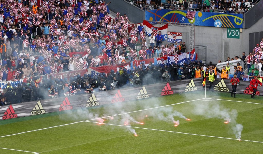 Λίγο πριν τελειώσει το ματς της εθνικής τους ομάδας με την Τσεχία κι ενώ η Κροατία νικούσε με 2-1, έκριναν σκόπιμο να αρχίσουν να πετούν δυναμιτάκια και καπνογόνα στον αγωνιστικό χώρο του «Ζοφρουά Γκισάρ».