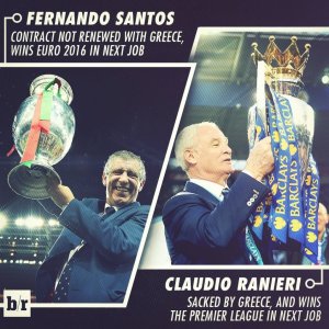 Με αυτό το σλόγκαν, η βρετανική έκδοση του «Bleacher Report» δημοσίευσε μία σύνθεση στο Twitter με πρωταγωνιστές τους Φερνάντο Σάντος και Κλαούντιο Ρανιέρι.