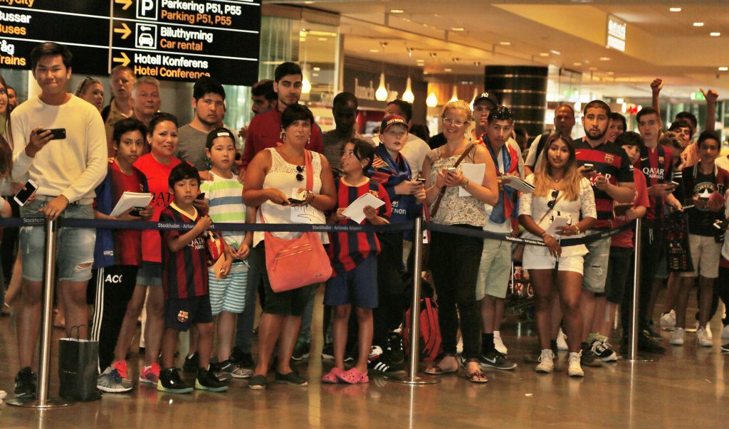 Εκεί είχαν μαζευτεί περισσότεροι από 300 Σουηδοί με φανέλες της Μπαρτσελόνα. Ο λόγος δεν ήταν άλλος από την άφιξη των «μπλαουγκράνα», που ήταν προγραμματισμένη για λίγη ώρα μετά από αυτή του Παναθηναϊκού!