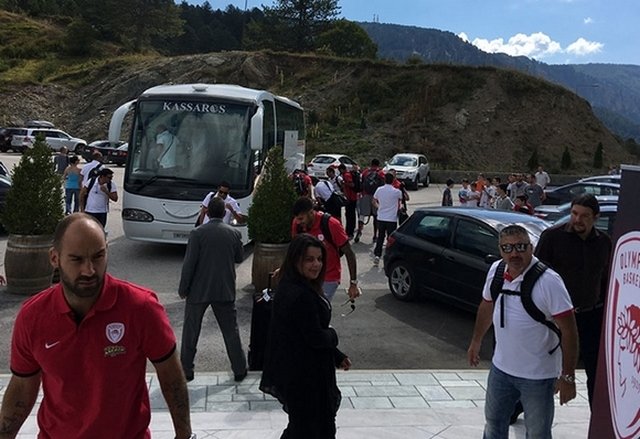 Κατά την είσοδο, μάλιστα, στην πόλη δεκάδες φίλοι των Πειραιωτών υποδέχτηκαν με συνθήματα και βεγγαλικά την αποστολή και στη συνέχεια αρκετοί έσπευσαν να πάρουν αυτόγραφα στο ξενοδοχείο.