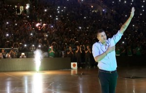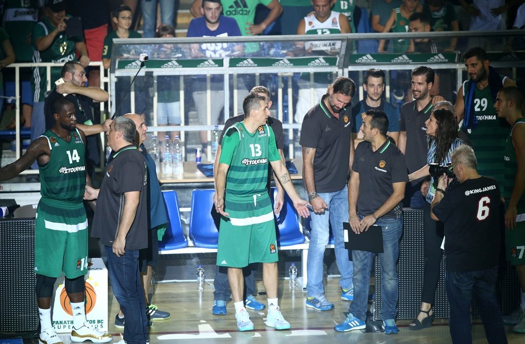 Ο άλλοτε αρχηγός του «τριφυλλιού» βρέθηκε στο παρκέ με πολιτικά και εκεί αποθεώθηκε από τον κόσμο, ο οποίος τραγουδούσε ρυθμικά το όνομά του. Εκεί ευχαρίστησε αρκετούς ανθρώπους, μεταξύ των οποίων και η οικογένεια Γιαννακόπουλου, ενώ έλαβε και κάποια αναμνηστικά.