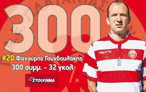 Τις 300 συμμετοχές σε Α’ Εθνική και μετέπειτα Σούπερ Λίγκα συμπλήρωσε κόντρα στον Παναιτωλικό ο Φανούρης Γουνδουλάκης.