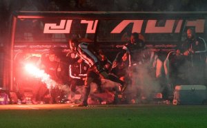 Φωτοβολίδα ευθείας βολής είχαμε στο ντέρμπι του ΠΑΟΚ με την ΑΕΚ με αποτέλεσμα το ματς να διακοπεί προσωρινά και τον Τάσο Σιδηρόπουλο να κάνει συστάσεις και να ξεκαθαρίζει πως στην επόμενη θα φύγει.
