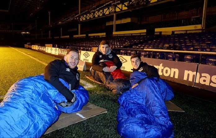 Στις κερκίδες και τον αγωνιστικό χώρο του Γκούντισον Παρκ κοιμήθηκαν οι ποδοσφαιριστές της ομάδας Κ23 της Έβερτον, προσκαλώντας και φίλους της ομάδας σε μια προσπάθεια στήριξης των αστέγων της πόλης του Λίβερπουλ. 50 υποστηρικτές των «Ζαχαρωτών» συντρόφεψαν του παίκτες τους, ενώ το ποσό που συγκεντρώθηκε ξεπέρασε τις 7.000 λίρες, άλλες 23.00 συνεισέφερε ο σύλλογος.