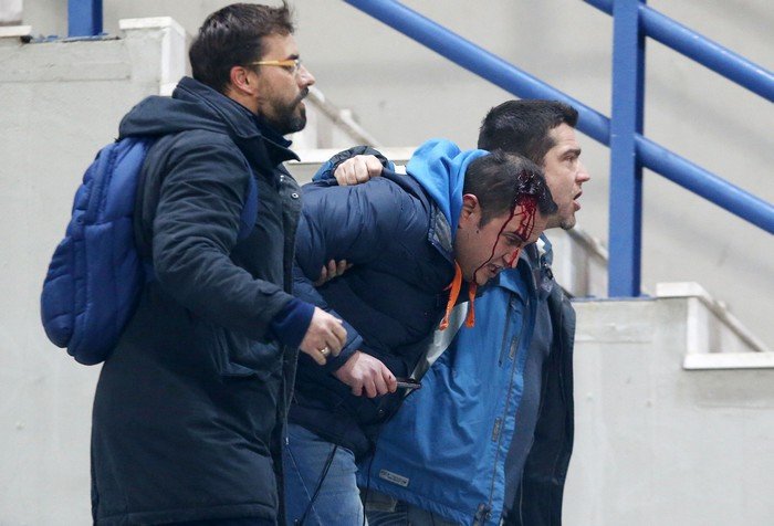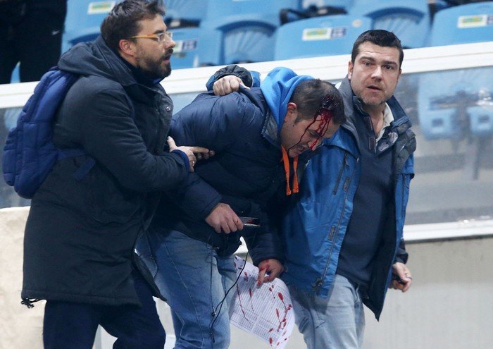 Τα επεισόδια, όμως, κλιμακώθηκαν με τους οπαδούς να περνούν στο ταρτάν του σταδίου με μερίδα των οπαδών να κατεβαίνει στο ταρτάν, όπου ακολούθησαν μάχες σώμα με σώμα με αστυνομικούς.