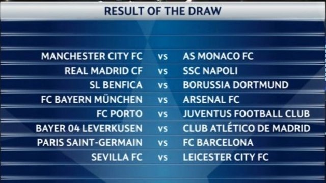 Ολοκληρώθηκε η κλήρωση για την φάση των 16 της κορυφαίας διασυλλογικής διοργάνωσης, που πραγματοποιήθηκε την Δευτέρα (12/12), στην Νιόν της Ελβετίας. Ενδιαφέρουσες είναι αρκετές από τις αναμετρήσεις που προκύπτουν, με τα σημαντικότερα ζευγάρια να είναι εκείνα ανάμεσα στις Μπαρτσελόνα και Παρί Σεν Ζερμέν και Μπάγερν Άρσεναλ. Επίσης ωραίο ματς κρίνεται και εκείνο της πρωταθλήτριας Ευρώπης, Ρεάλ Μαδρίτης, με την Νάπολι.