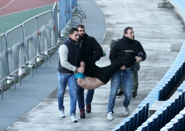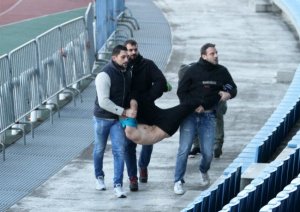 Τα σκηνικά έντασης στην έδρα των κυανόλευκων είναι συχνό φαινόμενο και το αστυνομικό στοιχείο έντονο σε κάθε γωνιά του γηπέδου. Να αναφέρουμε ότι την στιγμή της σύλληψης αρκετοί οργανωμένοι κινήθηκαν προς τα επίσημα, αλλά με την επέμβαση των ΜΑΤ δεν μπόρεσαν να πλησιάσουν.