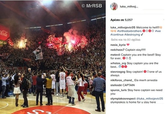 Ο «Μίλι» πόσταρε μία φωτογραφία από το γήπεδο, σημειώνοντας: «Καλώς ήρθατε στην κόλαση. Ορθόδοξοι αδελφοί. Συνεχίζουμε να καταστρέφουμε».