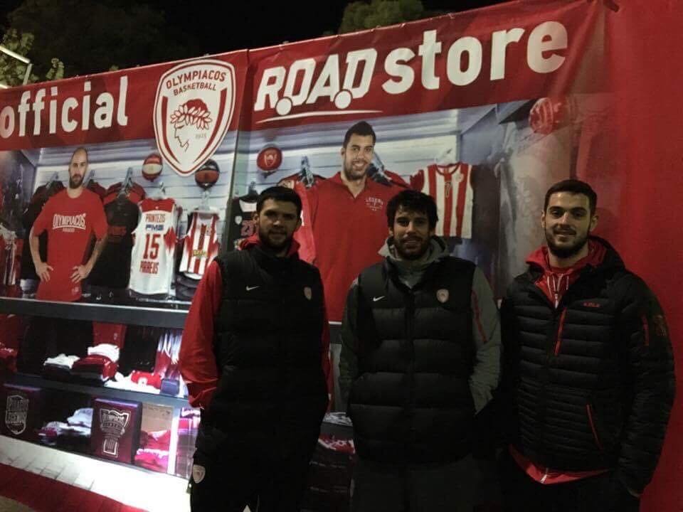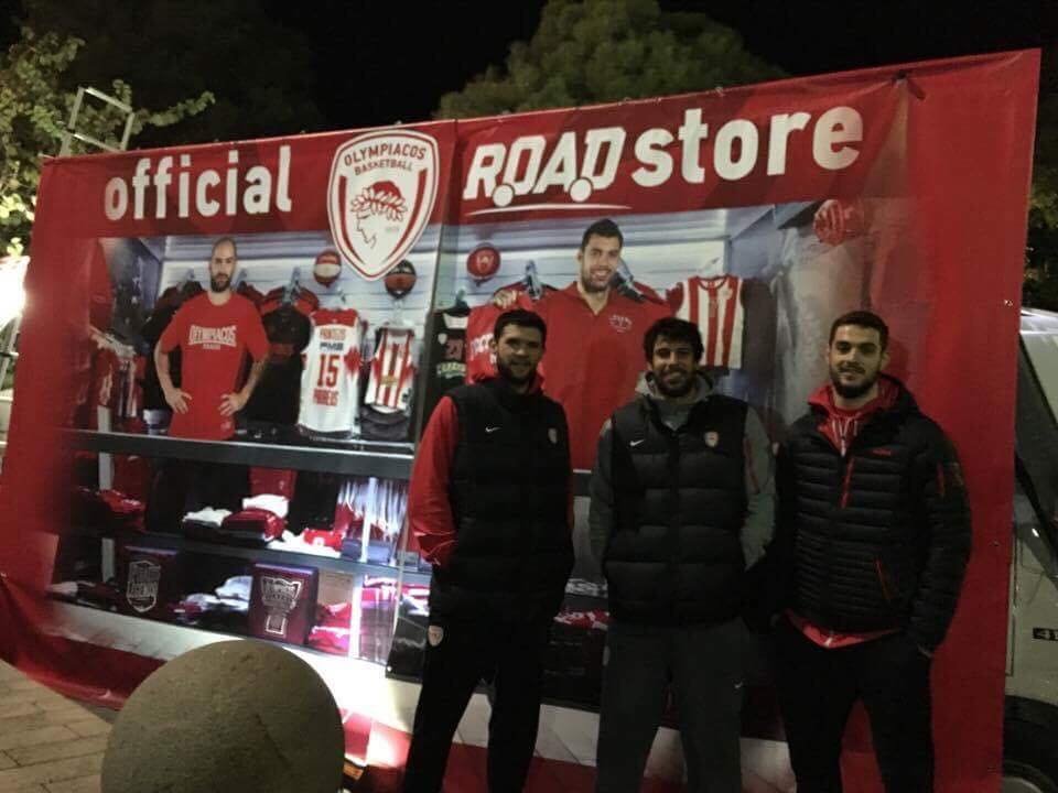 Στο αυτοκινούμενο επίσημο κατάστημα των Πειραιωτών, ωστόσο, βρέθηκαν κάποιοι ξεχωριστοί... πωλητές. Οι Γιώργος Πρίντεζης, Ιωάννης Παπαπέτρου και Κώστας Παπανικολάου επισκέφτηκαν το Olympiacos BC Road Store το βράδυ της Κυριακής, με τους φίλους των πρωταθλητών Ελλάδας να έχουν την ευκαιρία να δουν από κοντά τους άσους της ομάδας τους.