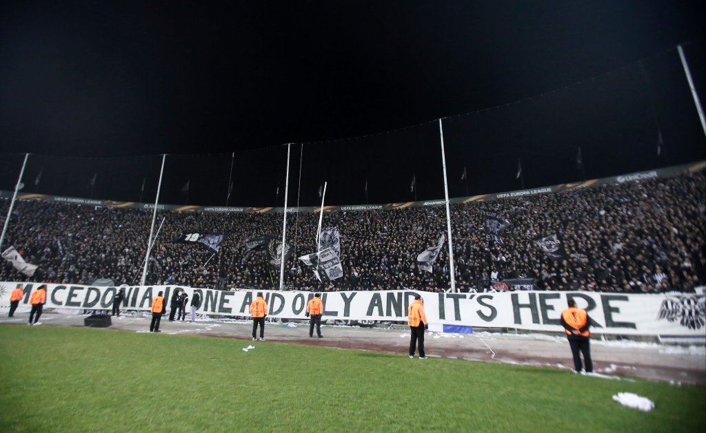 Οπαδοί του «Δικεφάλου του Βορρά» ύψωσαν στην Τούμπα πανό για τη Μακεδονία, το οποίο έγραφε χαρακτηριστικά: «Η Μακεδονία είναι μία και μοναδική και είναι εδώ».
