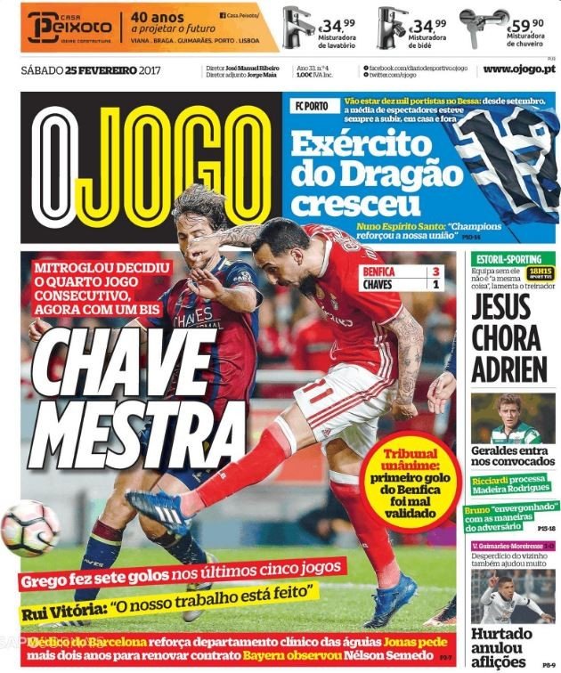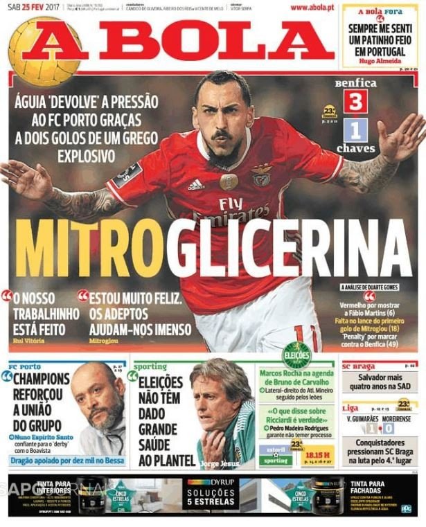 Μία ημέρα αργότερα αποθεώθηκε από μεγάλο μέρος του εγχώριου Τύπου καθώς έφτασε τα 20 τέρματα σε 31 συμμετοχές στη φετινή σεζόν. Και φυσικά δε λείπουν οι ευφάνταστοι τίτλοι, όπως εκείνος της έγκυρης «ABOLA».