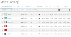 Πλέον, το αντιπροσωπευτικό μας συγκρότημα βρίσκεται στην 46η θέση, υποχωρώντας σε σχέση με τον Φεβρουάριο, κάτι που οφείλεται στα αποτελέσματα διεθνών φιλικών αγώνων που διεξήχθησαν το τελευταίο διάστημα.