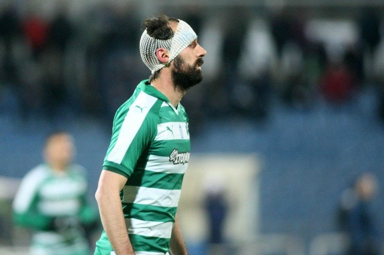 Ο στόπερ του Παναθηναϊκού συγκρούστηκε κεφάλι με κεφάλι με τον Λεοζίνιο στα πρώτα λεπτά του αγώνα με τον Ηρακλή,, με αποτέλεσμα να γεμίσει αίματα.