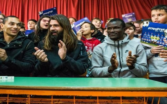 Το «παρών» έδωσαν οι Γιώργος Ζησόπουλος, Αμπιόλα Ντάουντα και Νικολά Ντιγκινί, οι οποίοι βέβαια έγιναν δεκτοί με ενθουσιασμό από τους μικρούς μαθητές και μαθήτριες.