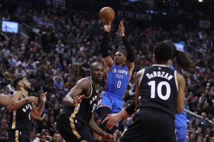 Δεν ξέρουμε τι άλλο να γράψουμε πια… Ο Ράσελ Γουέστμπρουκ είναι φέτος ασταμάτητος και για άλλη μία φορά μάγεψε άπαντες. Ο άσος των Θάντερ πέτυχε το τέταρτο σερί του τριπλ-νταμπλ με 24 πόντους, 16 ριμπάουντ και 10 ασίστ και φυσικά οδήγησε την ομάδα του στη νίκη με 123-102 επί των Ράπτορς.
