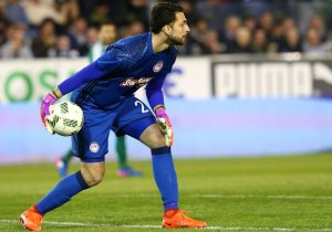 Ο τερματοφύλακας του Ολυμπιακού πραγματοποίησε σωτήριες επεμβάσεις, αλλά νικήθηκε τελικά από τον Μάρκους Μπεργκ και δεν κρύβει την απογοήτευσή του για το αποτέλεσμα.