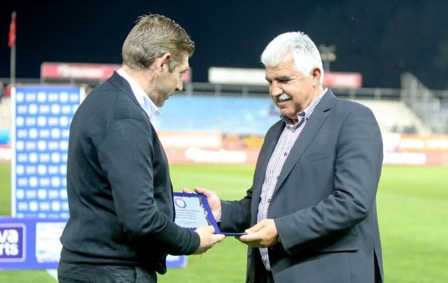 Το βράδυ της Δευτέρας (20/3) ο 64χρονος προπονητής έλαβε πλακέτα από τον Ηρακλή αυτή τη φορά και δια χειρός μάλιστα του ομολόγου του στον «Γηραιό» Σάββα Παντελίδη, με τον οποίο έχει συνεργαστεί στο παρελθόν.