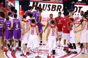 Στη απόλυτη ισορροπία κυμάνθηκε το πρώτο ημίχρονο, όπως αποτυπώθηκε έμπρακτα στον πίνακα του σκορ. Οι δύο ομάδες παρουσίαζαν αρκετά «νεκρά» διαστήματα σε επίπεδο απόδοσης ως ενδεικτικό χαρακτηριστικό της προσπάθειας που έχουν καταβάλλει στην εξαντλητικότατη φετινή μορφή της Ευρωλίγκας. Ο Ολυμπιακός στηριζόταν κατά βάση στα επιθετικά του ριμπάουντ (10 έναντι τεσσάρων). Βέβαια, οι «ερυθρόλευκοι» έκαναν αρκετές βιαστικές επιλογές στην επίθεση, ενώ μπορούσαν ν’ ανταποκριθούν καλύτερα στη άμυνα. Οι Αγραβάνης και Μιλουτίνοβ έδιναν πολλές λύσεις στη γραμμή ψηλών –ελλείψει- του εμπύρετου Πρίντεζη.