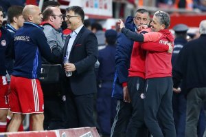 Ο Καρίμ έκανε πολλές κινήσεις και σε κάποιες περιπτώσεις αν έφευγαν οι μπάλες σωστά σε αυτόν, θα είχαμε δημιουργήσει κάποιες φάσεις. Έμεινα ευχαριστημένος και από το πρώτο ημίχρονο, από την προσήλωση των παικτών, από την ανάπτυξη των παικτών από πίσω. Ο Ολυμπιακός είναι μεγάλη ομάδα, γιατί ανατρέπει δύσκολες καταστάσεις.
