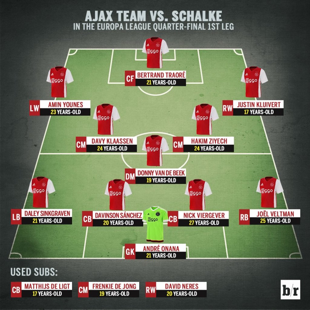 Στο πρώτο ματς με τη Σάλκε ο Άγιαξ κέρδισε με 2-0 και στη συγκεκριμένη αναμέτρηση αγωνίστηκαν ως βασικοί δύο παιδιά κάτω των 20 και άλλα δύο πέρασαν ως αλλαγή, ενώ έπαιξαν εννιά παίκτες που ήταν μέχρι 21 ετών!
