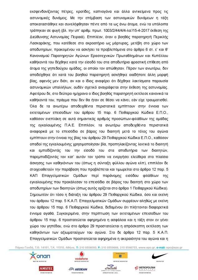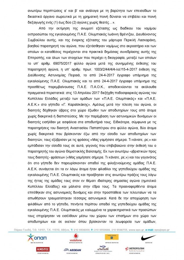 Διαβάστε το σκεπτικό της απόφασης για να αντιληφθείτε το μέγεθος της υπερβολής εις βάρος των «ερυθρολεύκων», το οποίο γίνεται κατανοητό ότι είναι προϊόν επί της ουσίας του αρνητικού κλίματος κατά του Ολυμπιακού από συγκεκριμένες κατευθύνσεις.