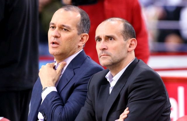 Αμφότεροι, λοιπόν, πήγαν στα αποδυτήρια και συνεχάρησαν τον Γιάννη Σφαιρόπουλο και τους παίκτες του για τη νίκη επί της Εφές, δίνοντάς τους και το σύνθημα για νέα επιτυχία εν όψει του αγώνα της Τρίτης (2/5) στο ΣΕΦ.