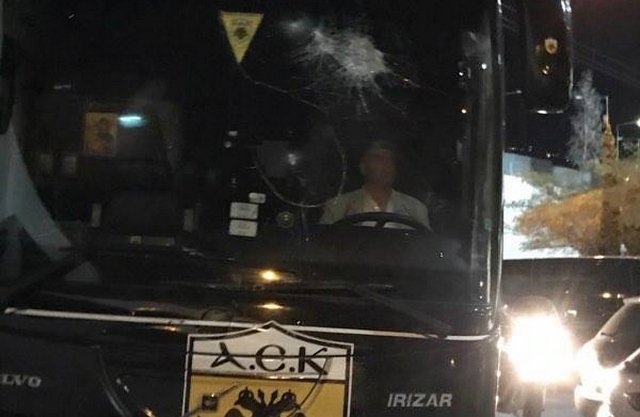 Οπαδοί των «ασπρόμαυρων» πέταξαν πέτρες στο πούλμαν της ΑΕΚ, στο οποίο εκείνη τη στιγμή δεν βρίσκονταν ποδοσφαιριστές της ΑΕΚ, οι οποίοι δεν είχαν βγει ακόμη από τα αποδυτήρια.
