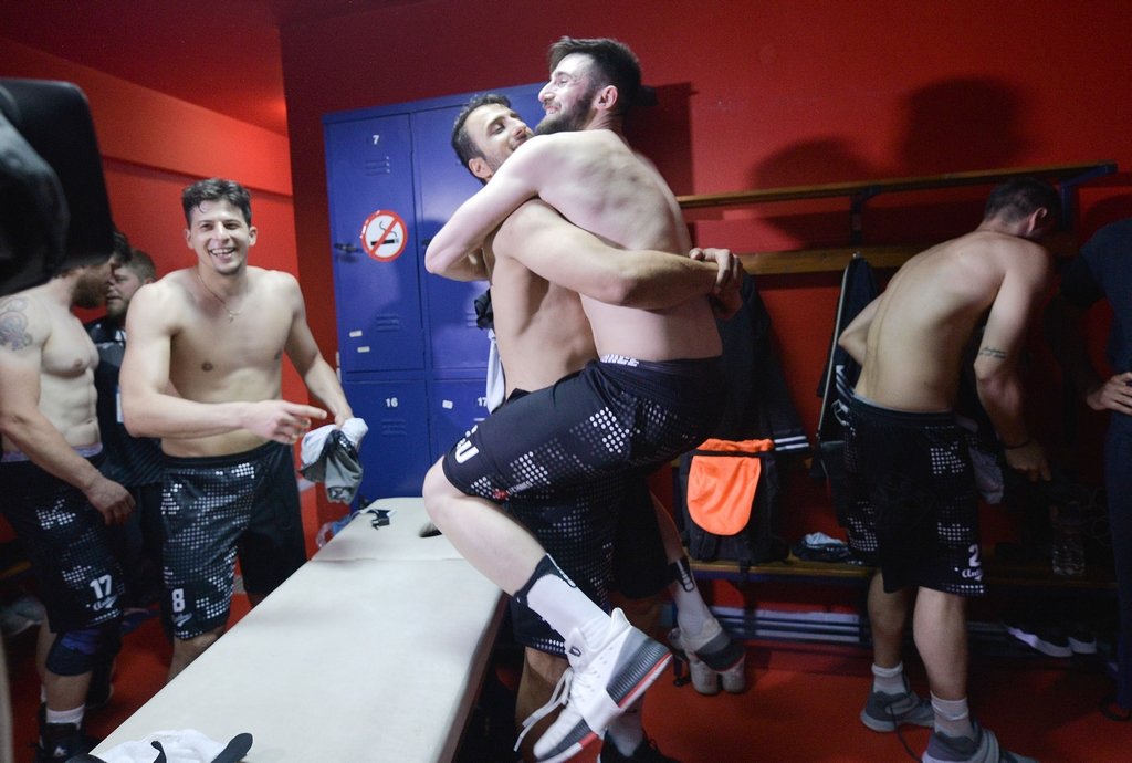 Στο τάραφλεξ δεν κατάφεραν να το πανηγυρίσουν λόγω όσων έγιναν μετά τη λήξη του πέμπτου τελικού το βράδυ της Κυριακής (7/5), όμως, στα αποδυτήρια έστησαν πάρτι οι παίκτες του ΠΑΟΚ για το τρίτο πρωτάθλημα στη σειρά.