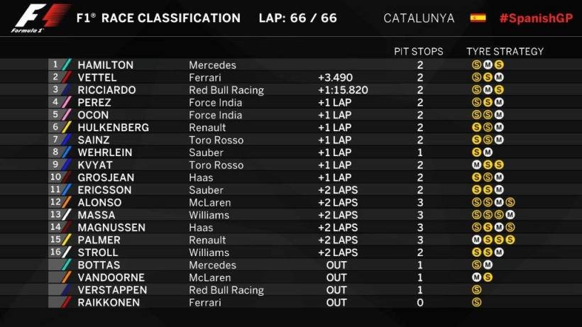 Ο Λιούις Χάμιλτον ήταν ο μεγάλος νικητής του καταλανικού γκραν πρι την Κυριακή (14/5), καταφέρνοντας και χάρη στη στρατηγική του στα πιτς και τα ελαστικά να δει πρώτος την καρό σημαία, αφήνοντας πίσω του τον Σεμπάστιαν Φέτελ.