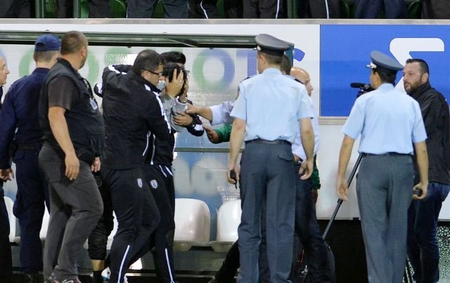 Μέσα στον αγωνιστικό χώρο δεν υπήρχε αναστάτωση. Μόνο στον πάγκο μας δίπλα στον Ιβιτς. Οι διαιτητές ήταν μέσα στον αγωνιστικό χώρο, ο Κομίνης κάλεσε τους άλλους γύρω του και ο 4ος πήγε και το είπε στον διαιτητή. Εγώ πρώτος ενημέρωσα τον Κομίνη αλλά ο 4ος και ο παρατηρητής τον είχαν ενημερώσει πρώτοι. Τα πράγματα ήταν ήρεμα μετά τη σύρραξη και δεν είχαμε άλλα επεισόδια και συμπλοκές. Εγώ δυο φορές είπα στον Κομίνη ότι χτυπήθηκε και πήγα με το κουτάκι και το έδειξα. Μάλιστα με απομάκρυναν κάποιοι σεκιουριτάδες και πρόλαβα να το δείξω το κουτί. Μόλις το έκανα αυτό τότε ο Κομίνης έφυγε για τα αποδυτήρια. Οι διαιτητές δεν αποσύρθηκαν για τη σύρραξη αλλά όταν τους ενημερώσαμε ότι χτυπήθηκε ο Ιβιτς. Το δείχνει ξεκάθαρα αυτό το βίντεο».